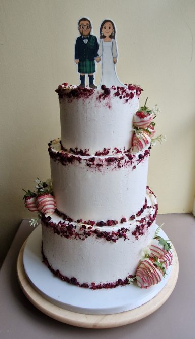 Whether you are looking for a simple and elegant cake or a bold and striking one, I am proud to create bespoke designs that perfectly match your vision and requirements. From start to finish, I am dedicated to making your big day extra special and unforgettable.